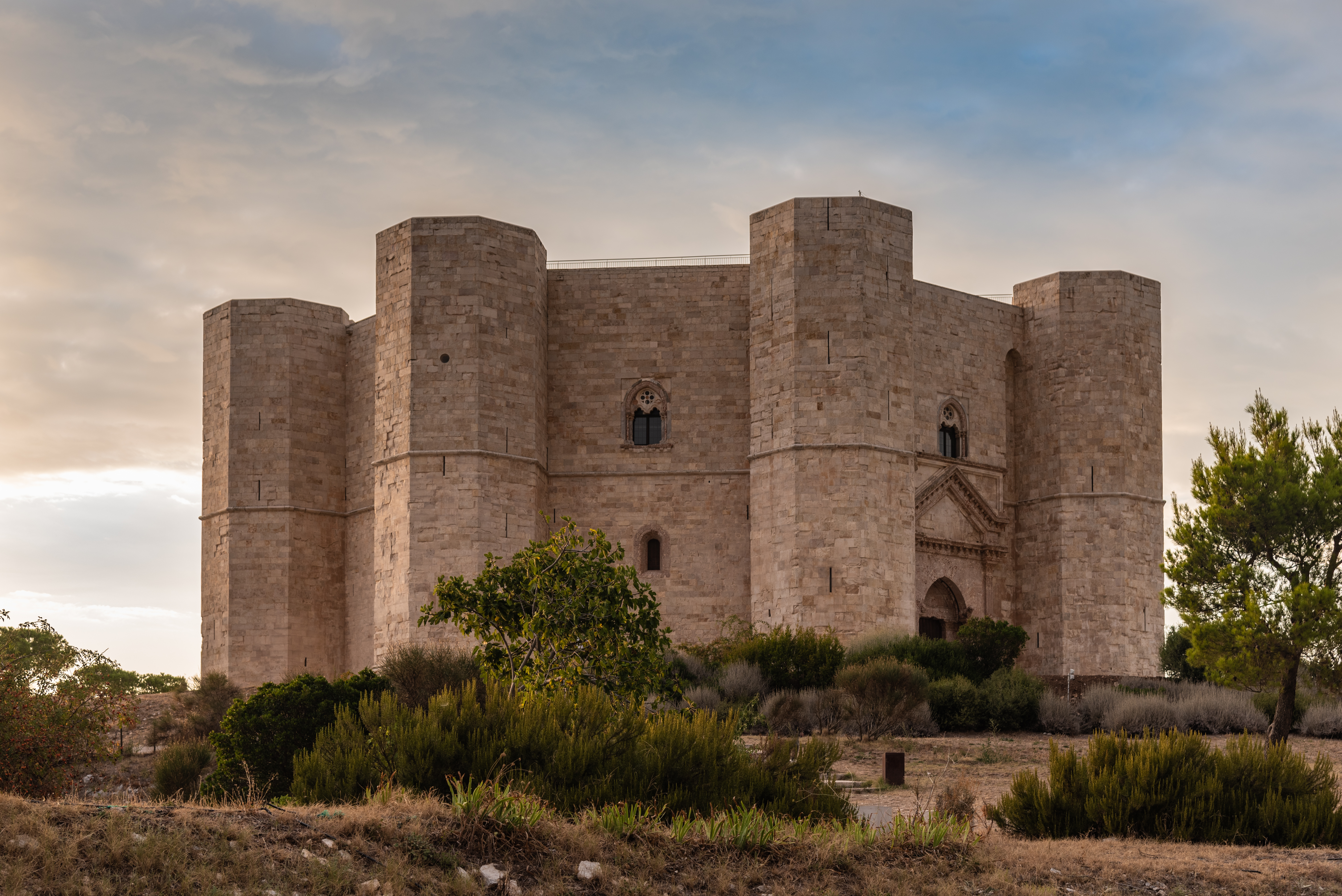 Castel del Monte è il simbolo della perfezione delle forme. Rappresenta la perfetta fusione della cultura classica con elementi provenienti dal Nord Europa e dal mondo musulmano. Eretto nel 1420 per volontà di Federico II di Svevia, Il maniero è il capolavoro dell'architettura militare e per posizione astronomica, precisione matematica raccoglie e simboleggia in modo perfetto la visione illuminata dell'imperatore che accoglieva presso la sua corte studiosi greci, arabi, italiani ed ebrei. Il numero otto è la regola che caratterizza il castello: il cortile ottagonale fa da pianta attorno alla quale si dispongono 2 piani con 8 sale che formano un ottagono, su cui gli spigoli si innestano otto torri di analoga forma. Nel 1996 Castel del Monte è stato inserito nella lista dei Patrimoni mondiali.